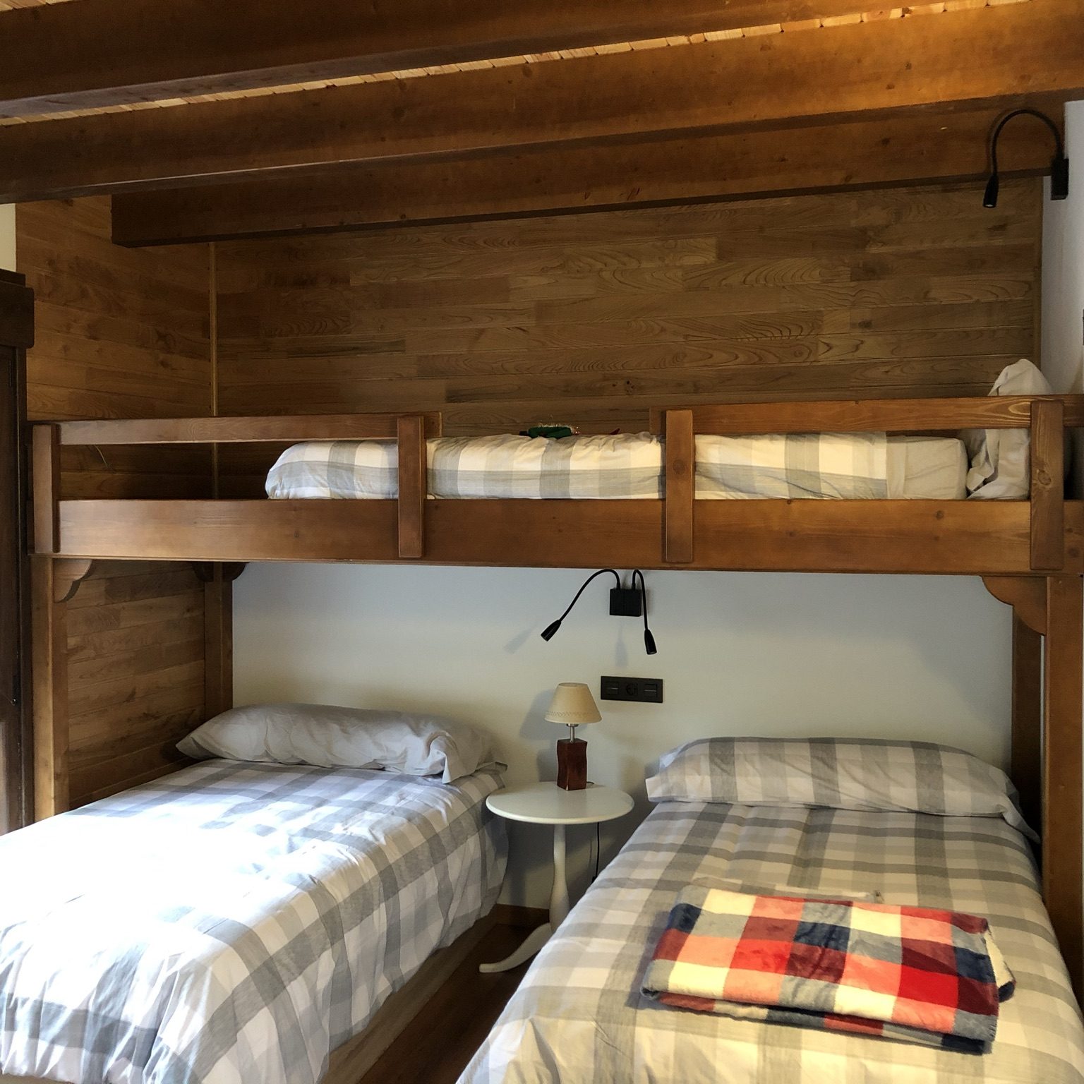 A pesar de tener dos habitaciones, tiene una capacidad para 7 pax, ya que en una habitación se ha colocado una litera de obra y se ha aprovechado la altura de la cubierta para realizar un pequeño altillo donde habilitar otra zona de descanso.